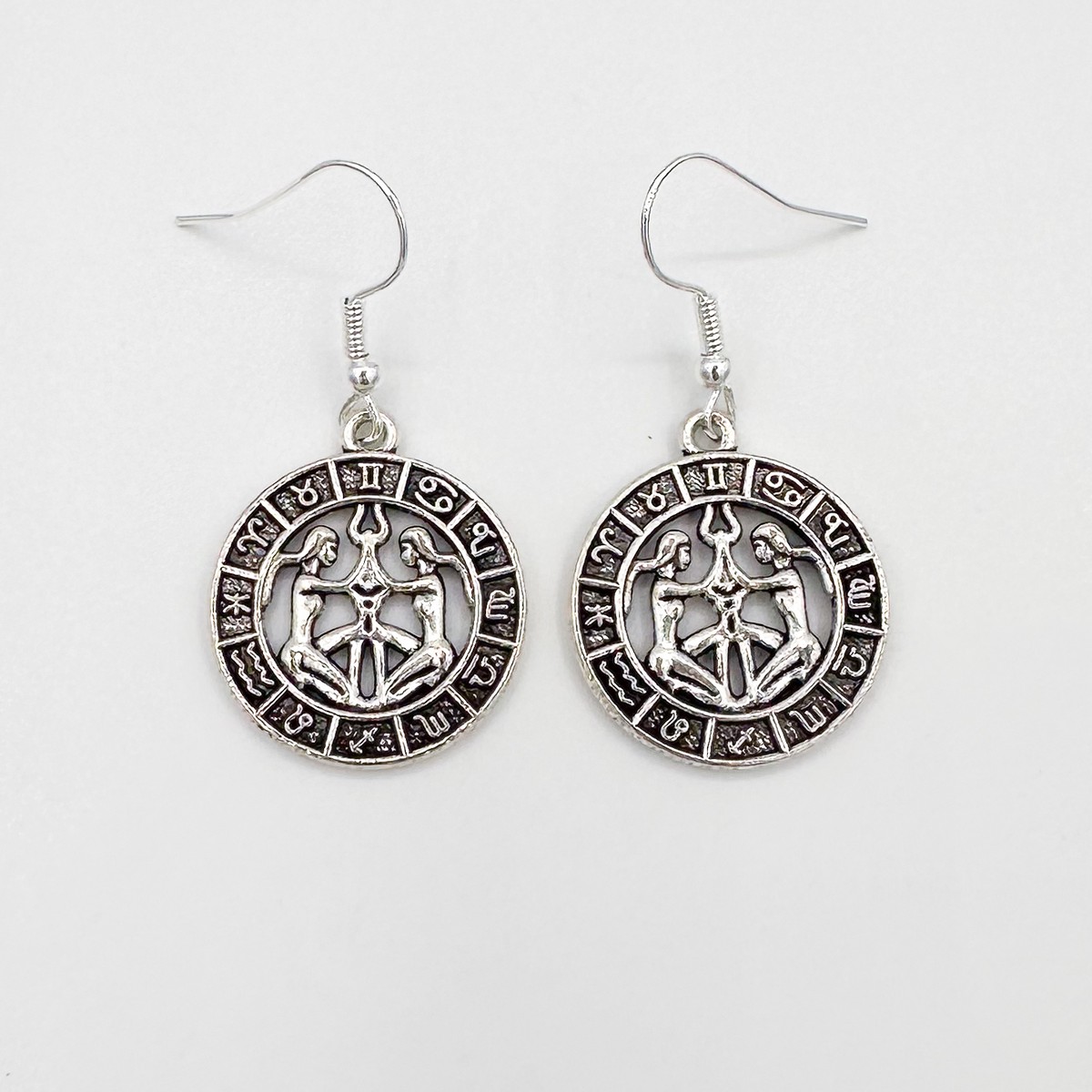 Metalliset horoskooppikorvakorut. Kaksonen.