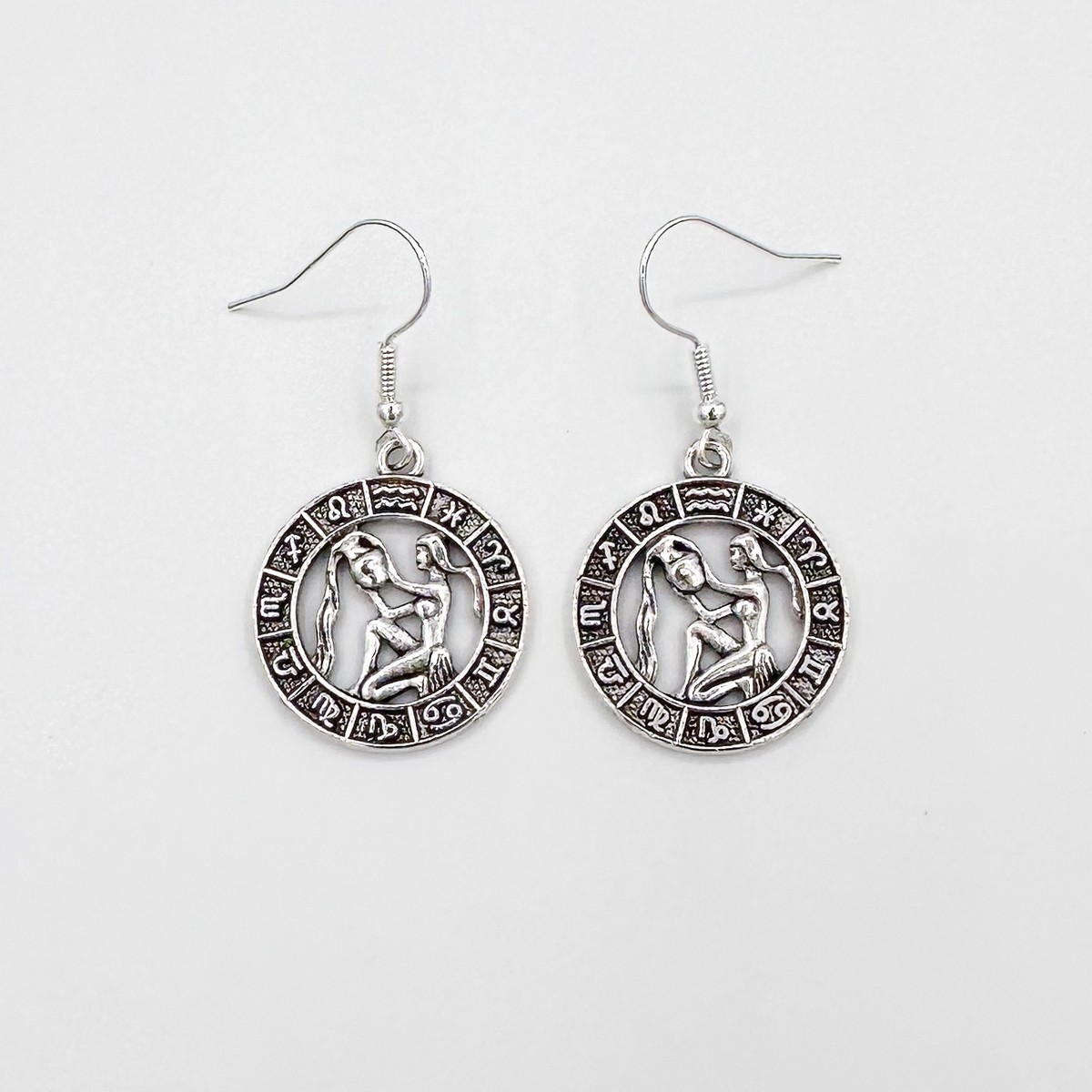 Metalliset horoskooppikorvakorut. Vesimies.