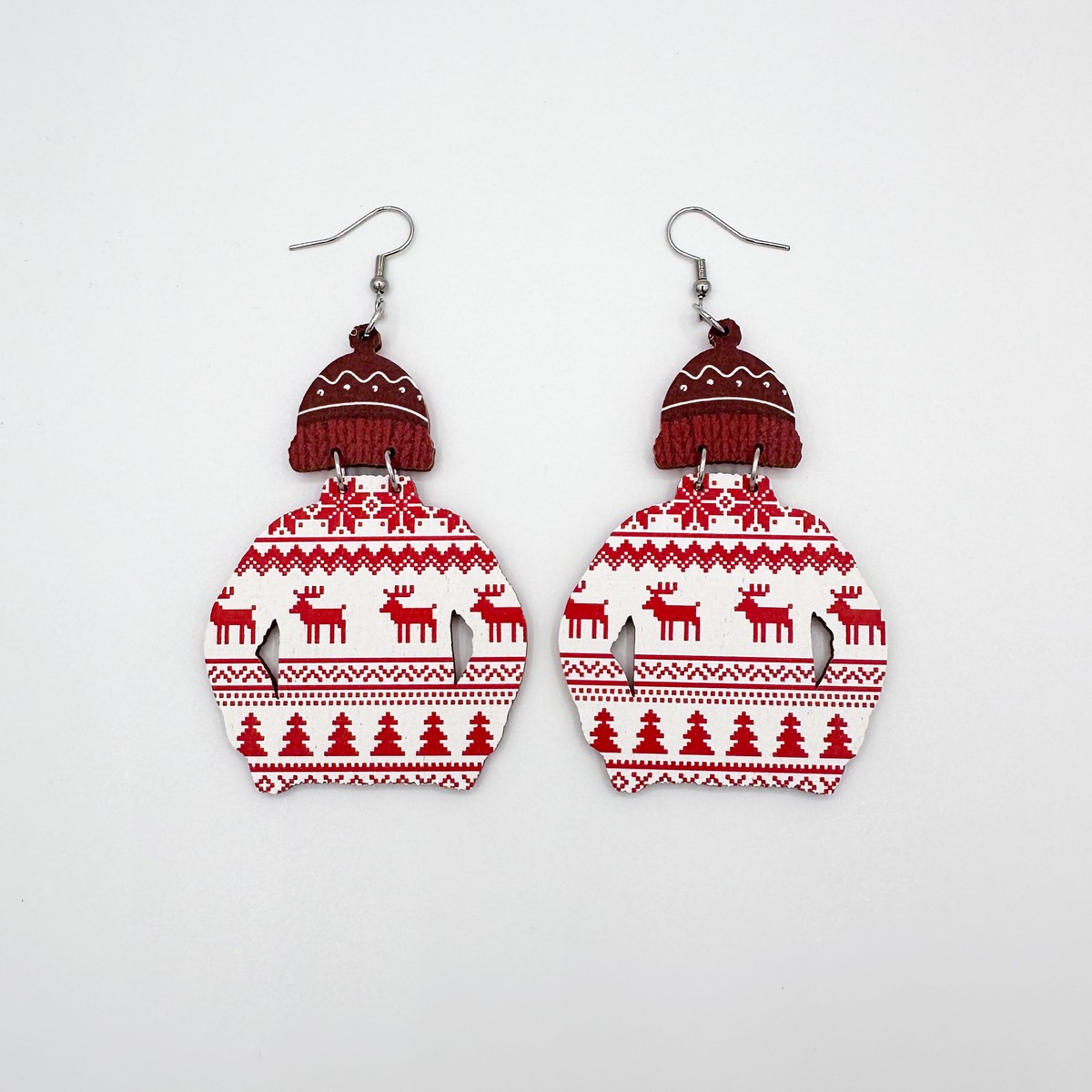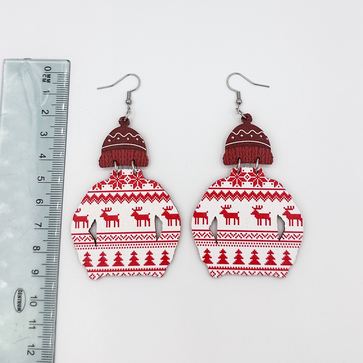 Isot jouluiset villapaita-korvikset.