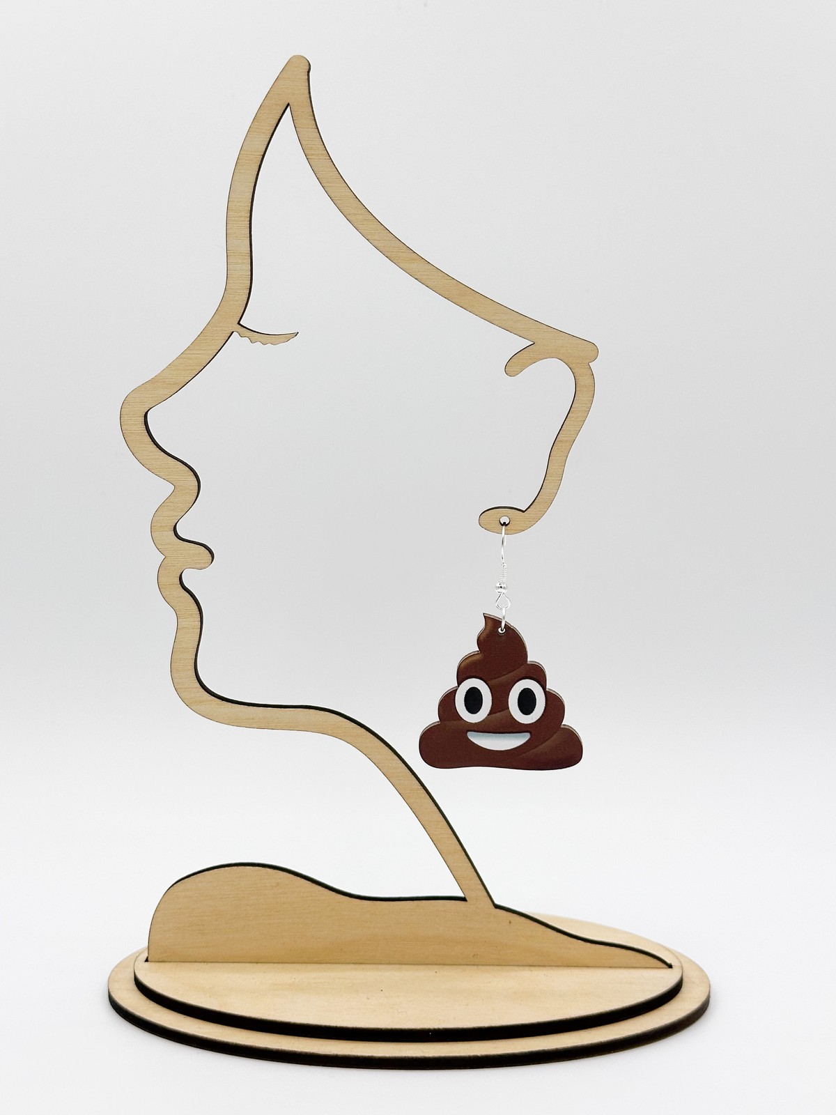 Kakka-emoji -korvakorut. Materiaali tulostettua vaneria.