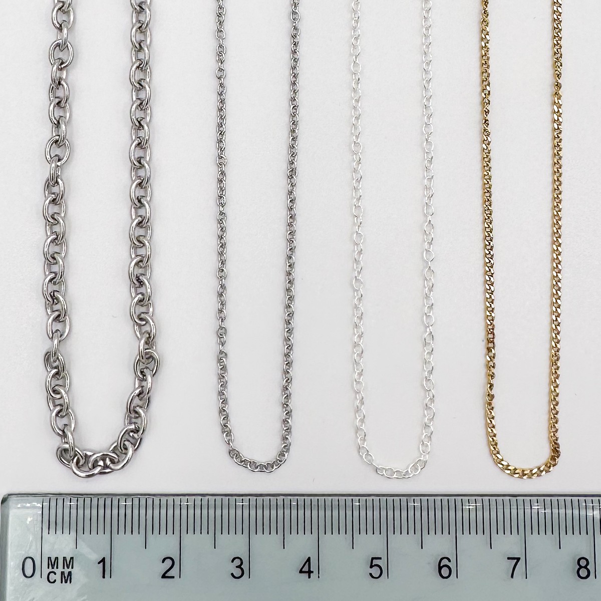 - Paksu teräksen värinen ketju: Kirurginteräs (316L)
