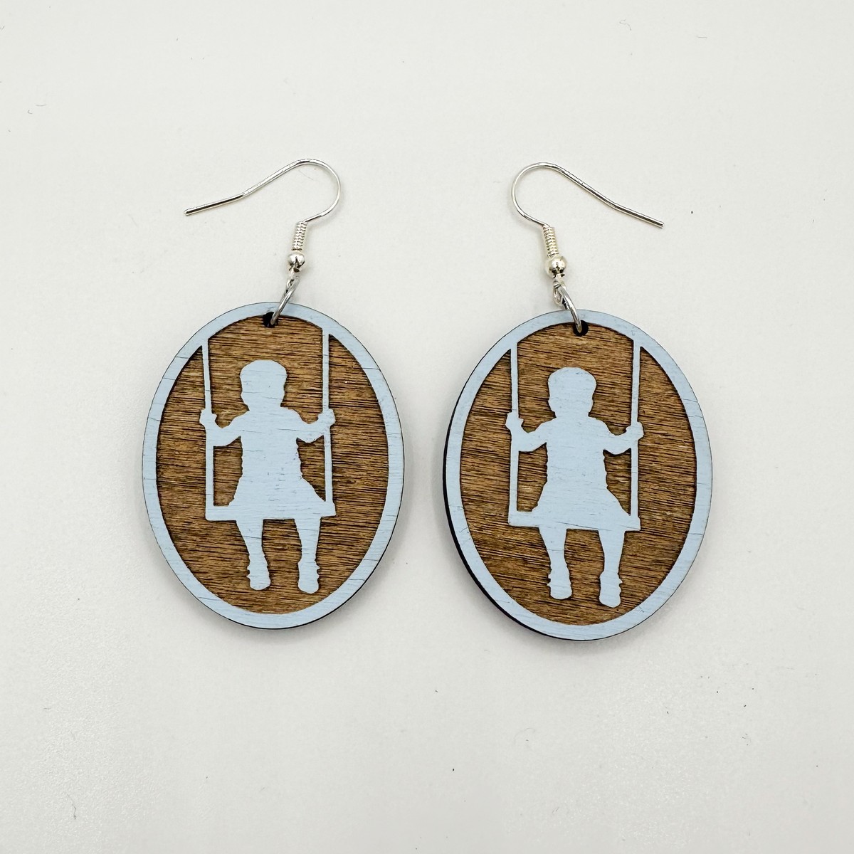 Puiset vaaleansiniset ”Keinuva poika” -korvikset.