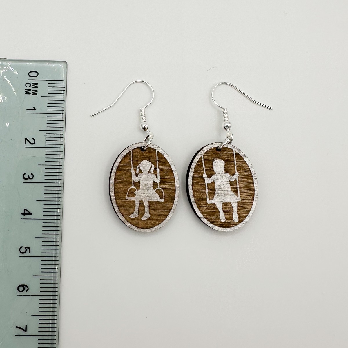 Keinuva tyttö ja poika -korvakorut (useita kokoja)