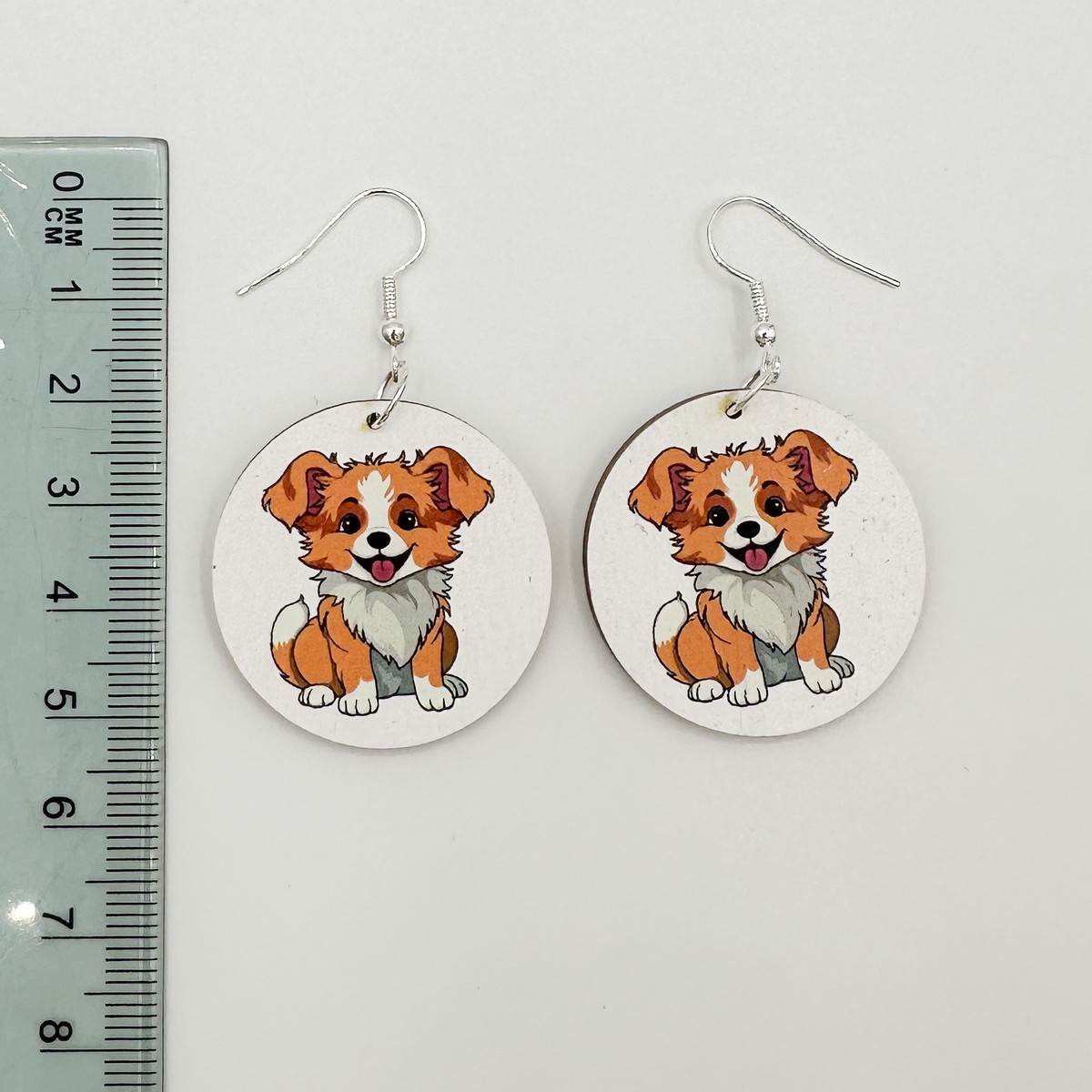 Puiset tulostetut koirakorvikset: Piirretty koiranpentu.