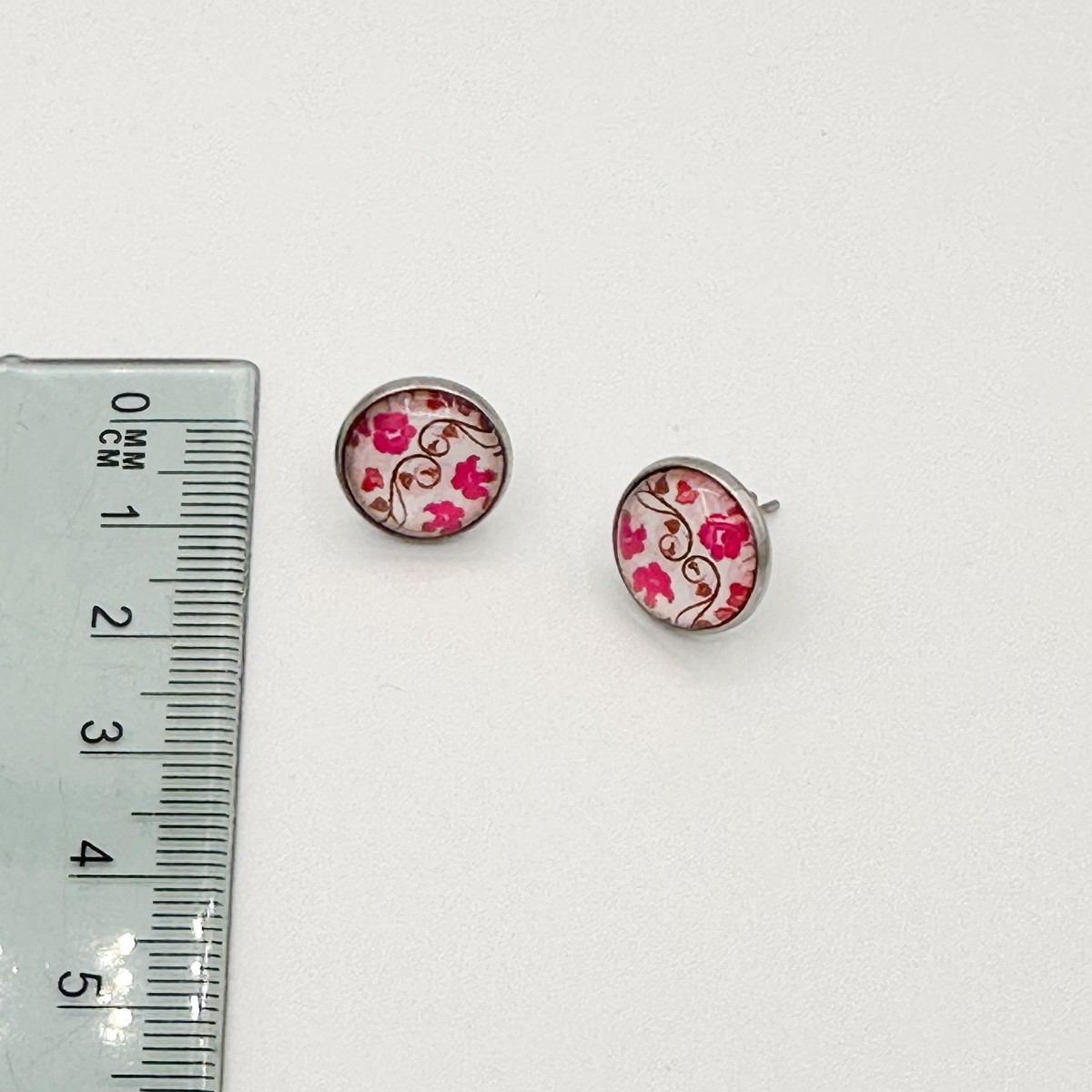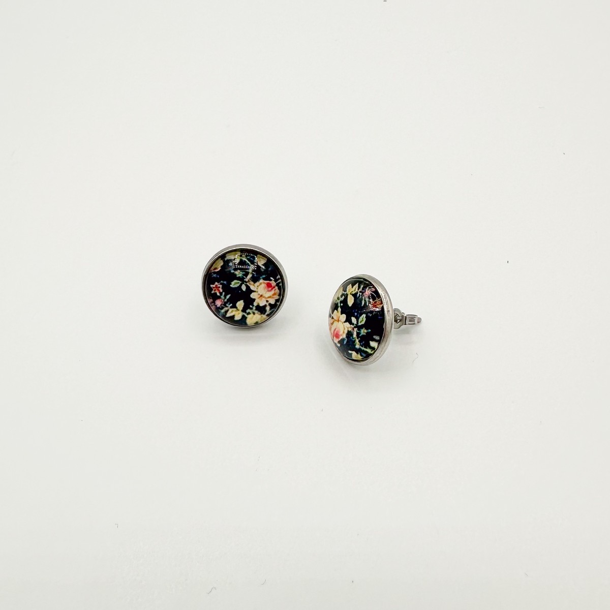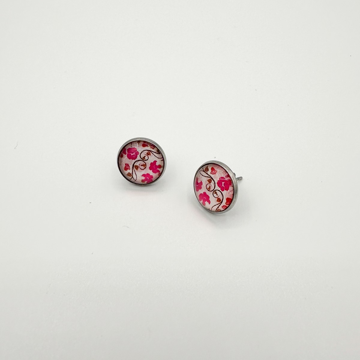 ”Kukkaköynnös” -nappikorvikset. Saatavana useita värejä.
