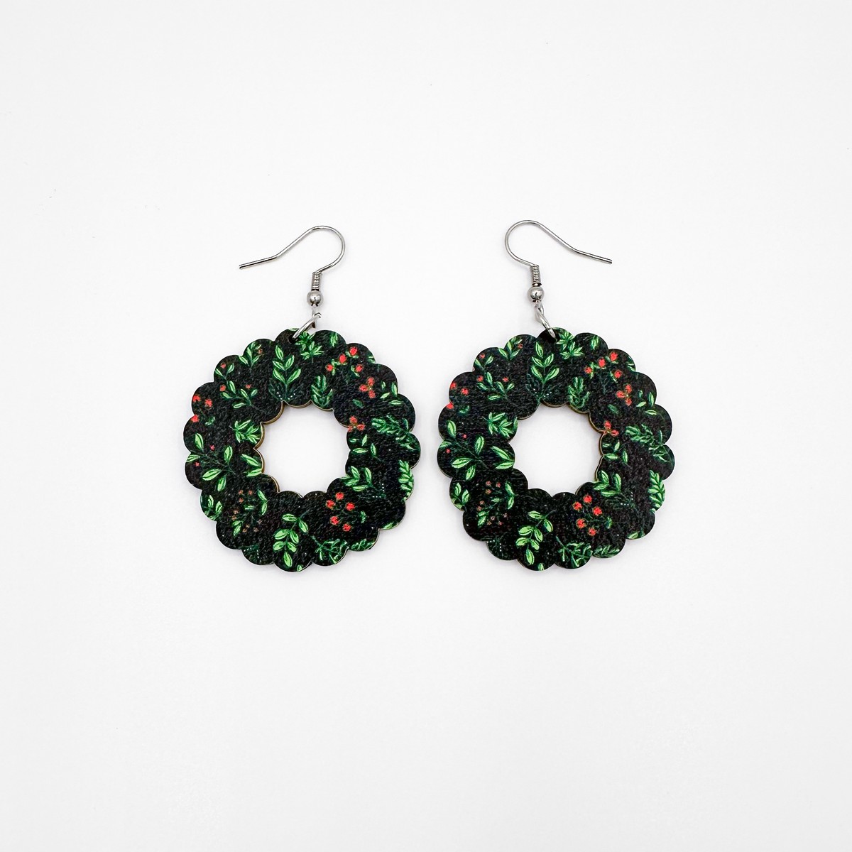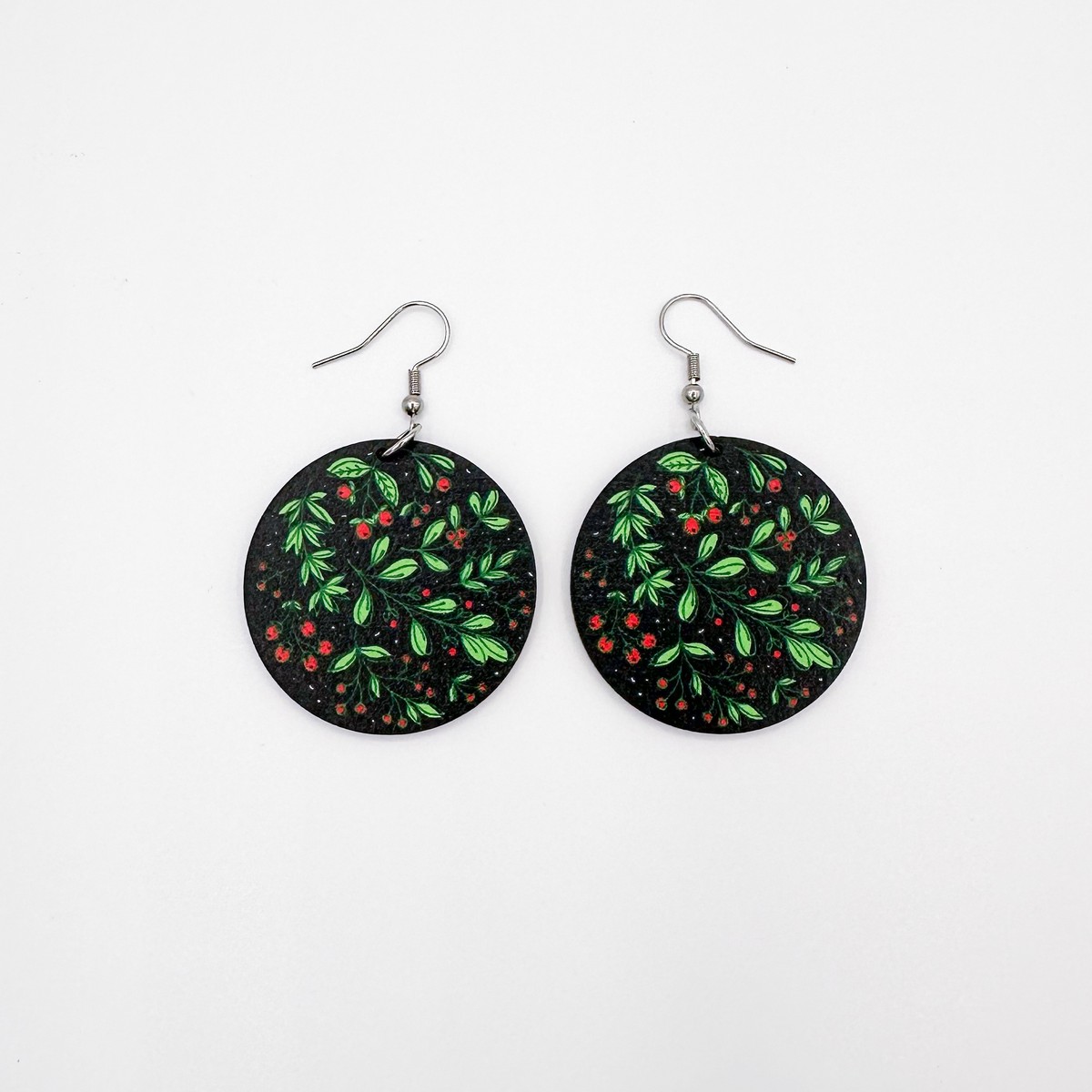 Jouluiset mistelikuosi-korvakorut. Saatavana useita eri malleja.