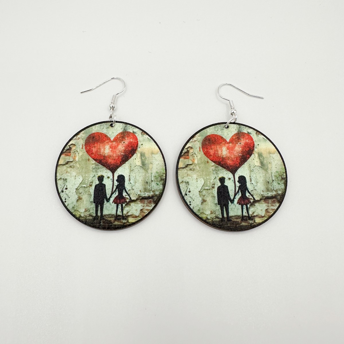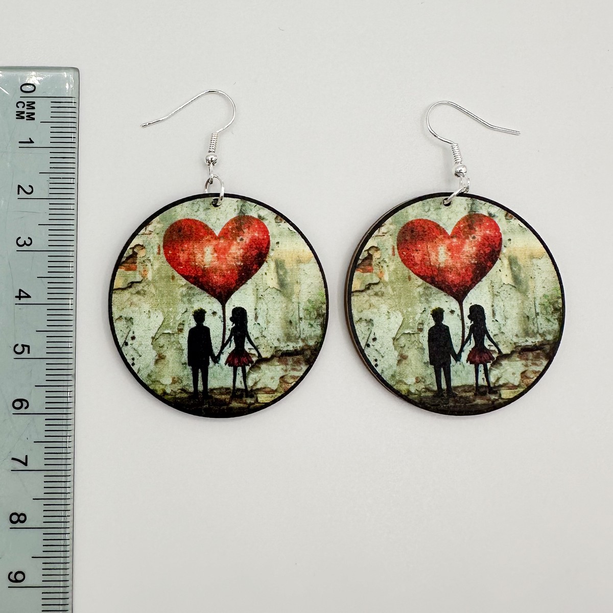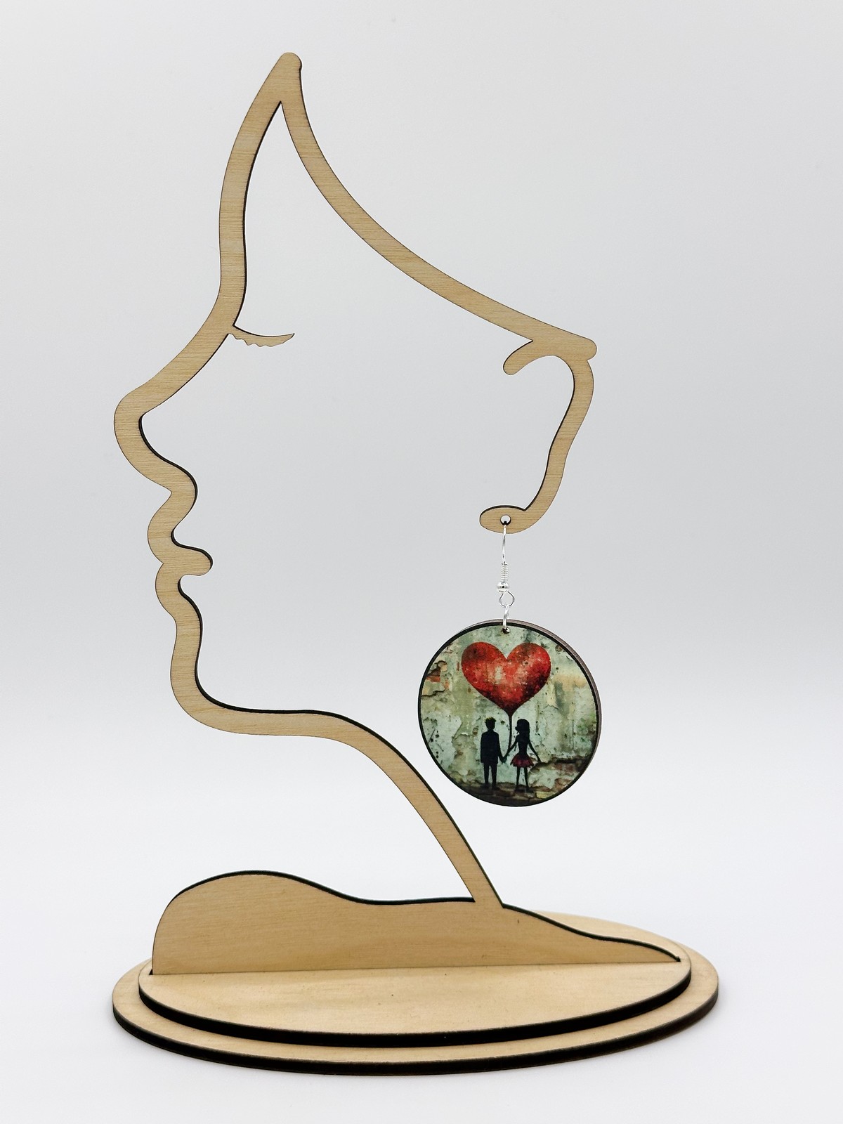 Nuori rakkaus -korvakorut. Materiaali tulostettua vaneria.