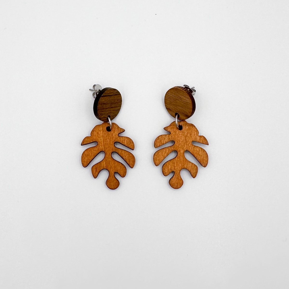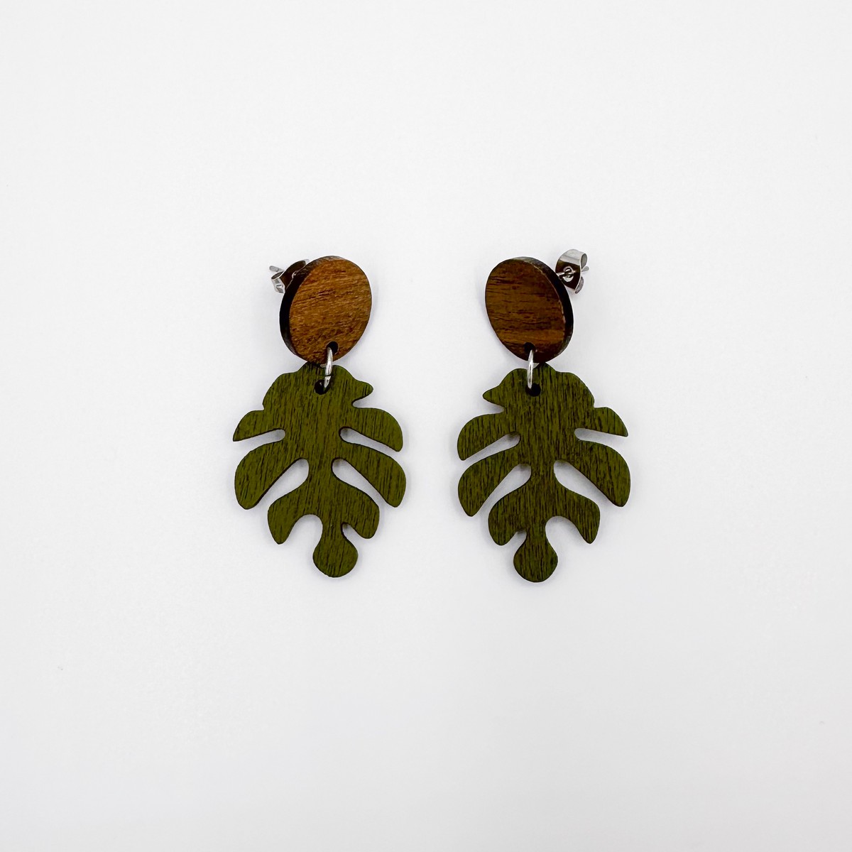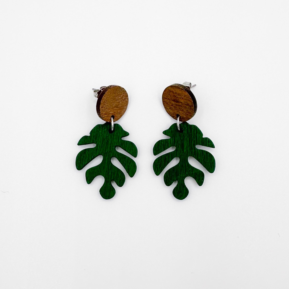 Puiset ”Peikonlehti ympyrällä” -nappikorvakorut. Saatavana useita värejä.