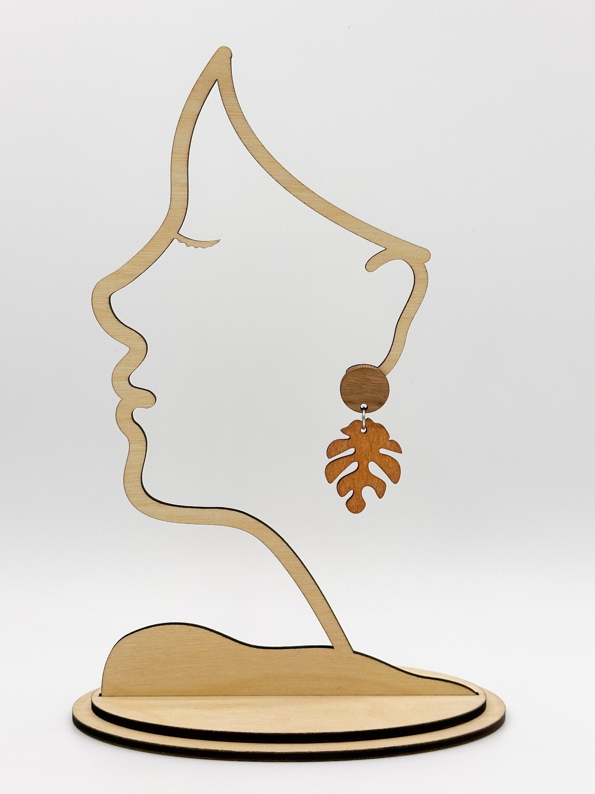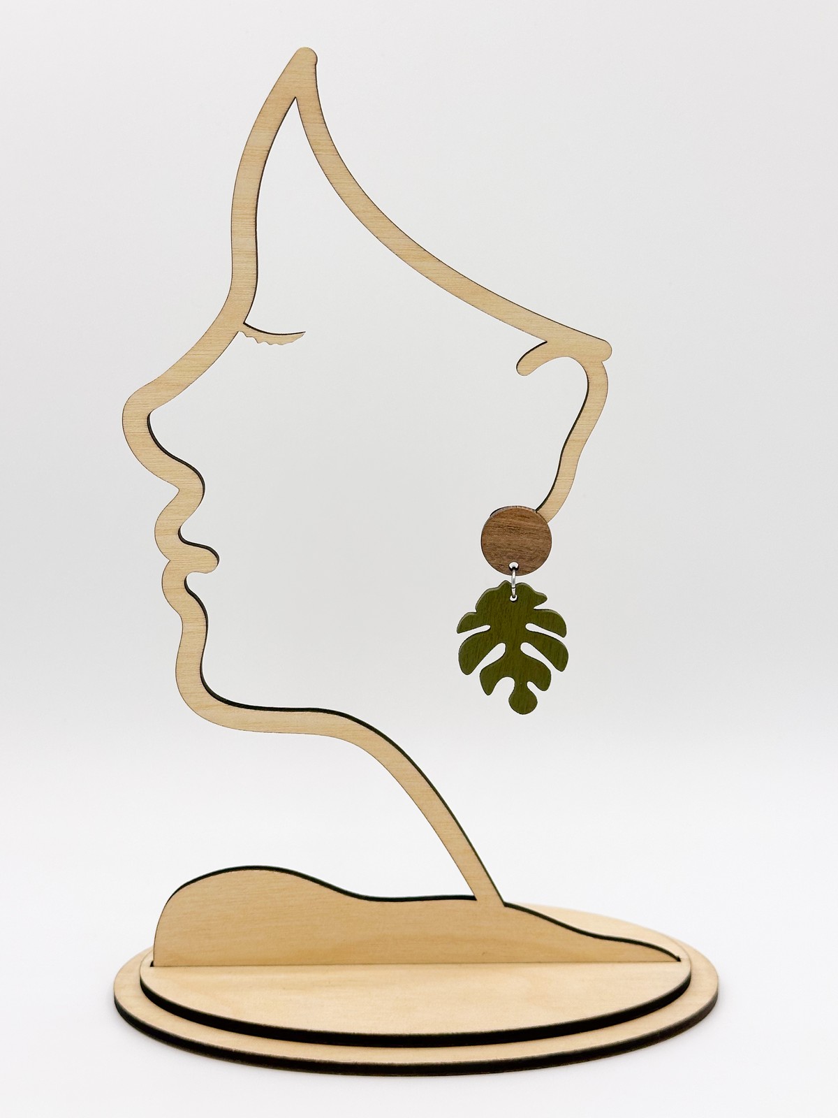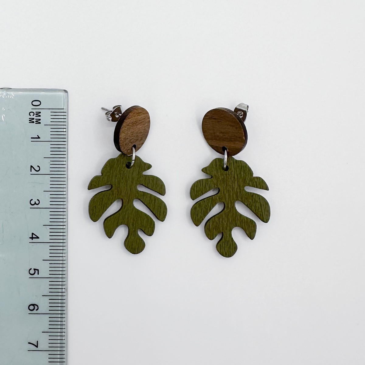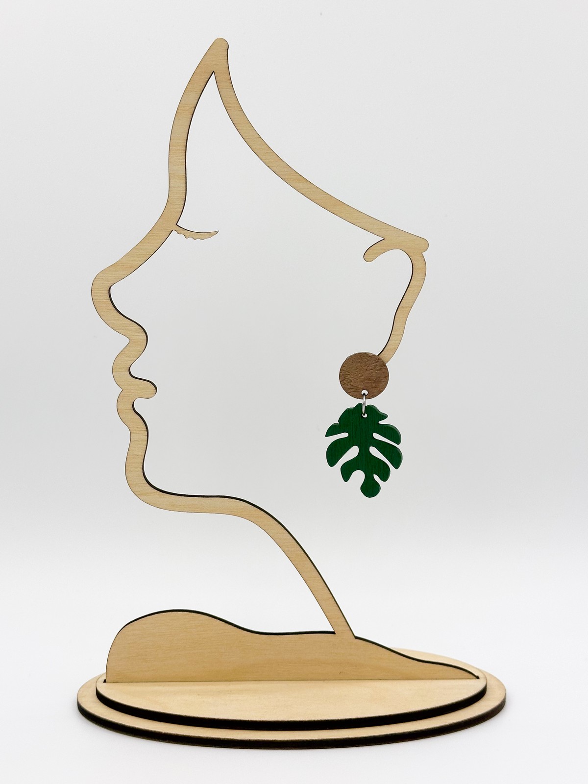 Puiset ”Peikonlehti ympyrällä” -nappikorvakorut. Saatavana useita värejä.