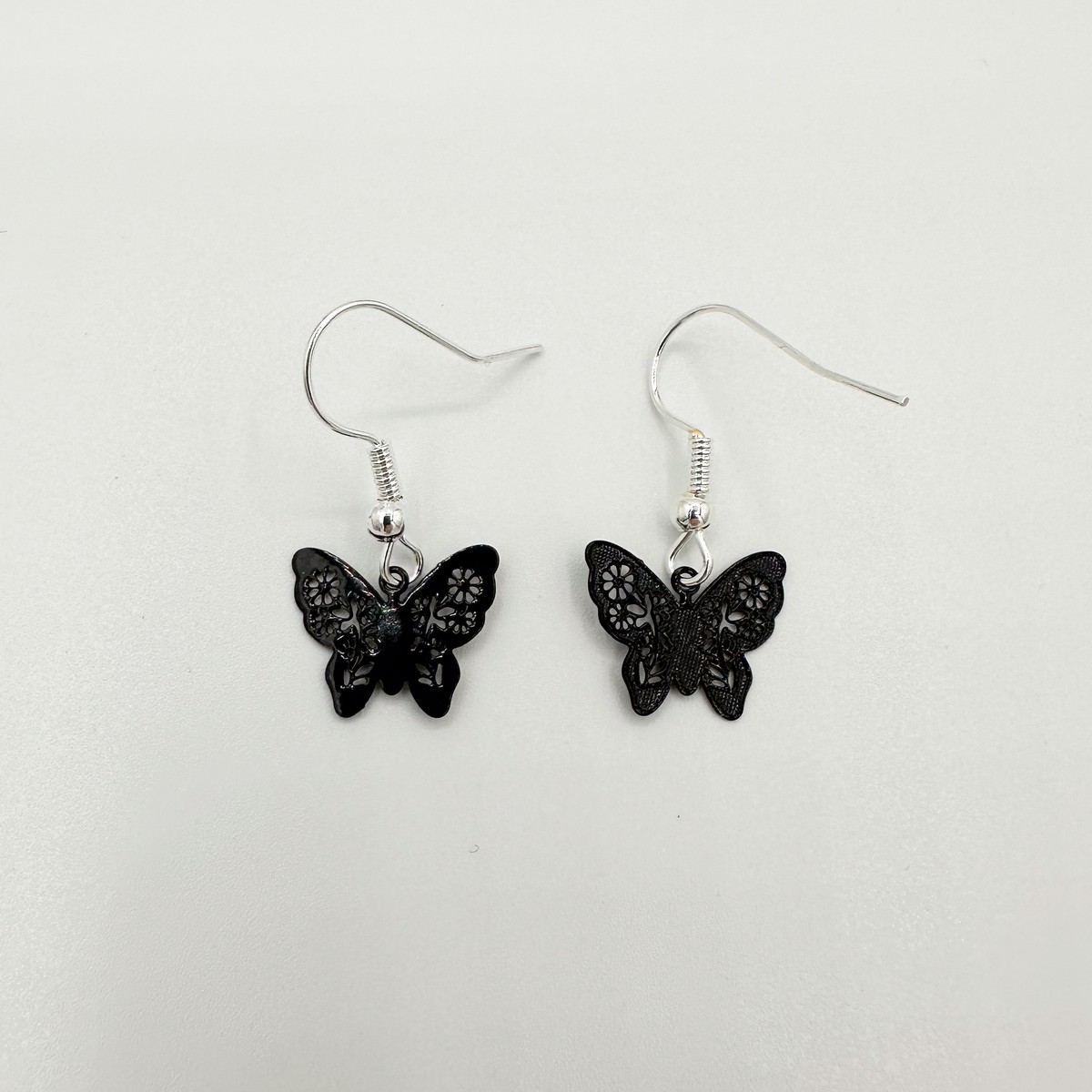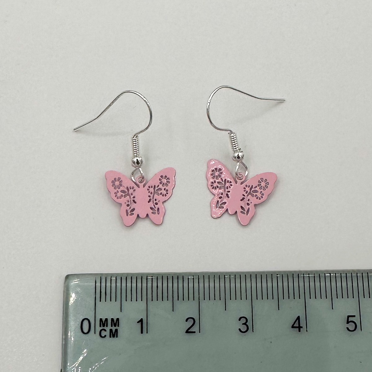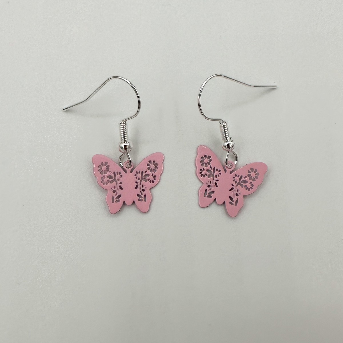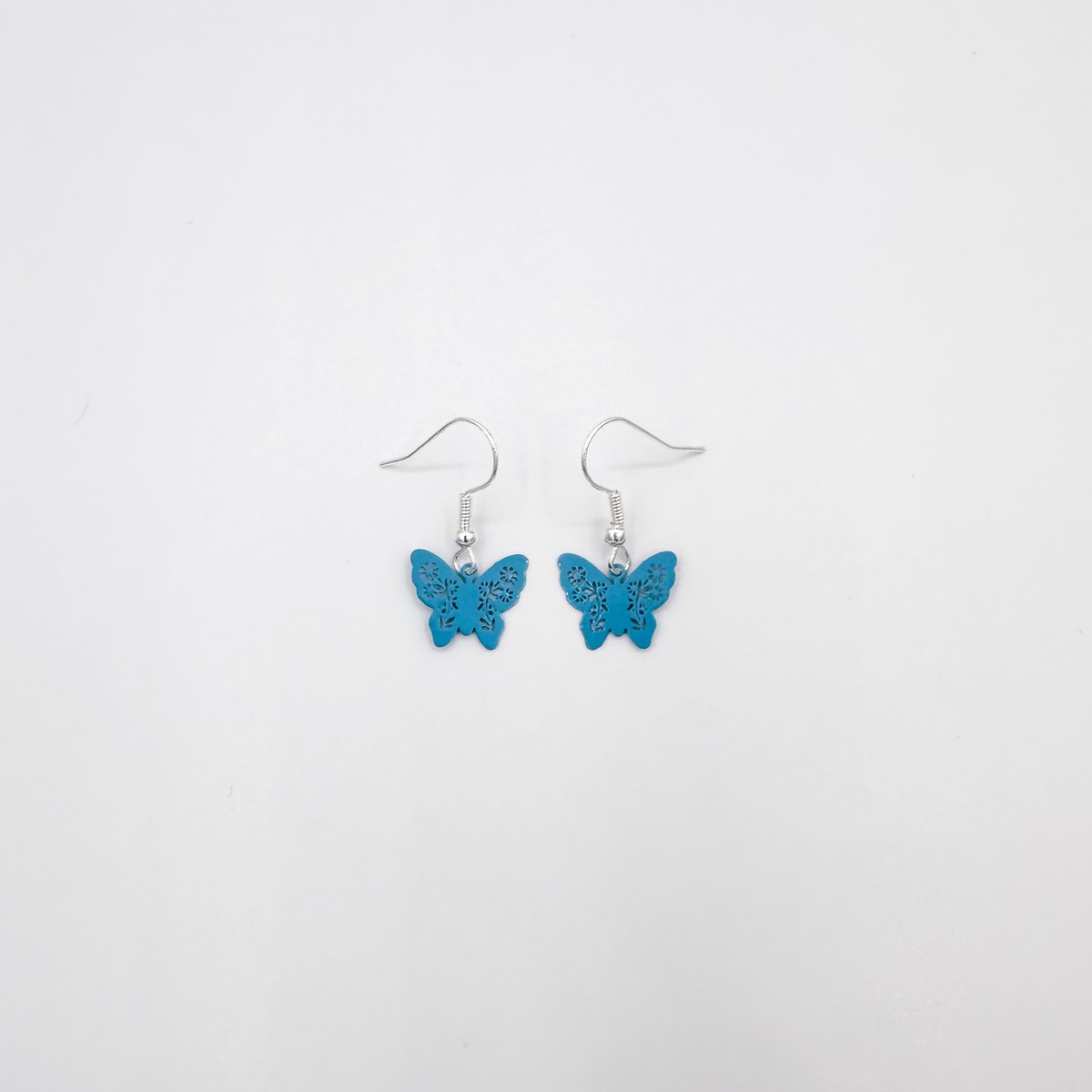 Pienet metalliset perhoskorvikset. Saatavana useita värejä.