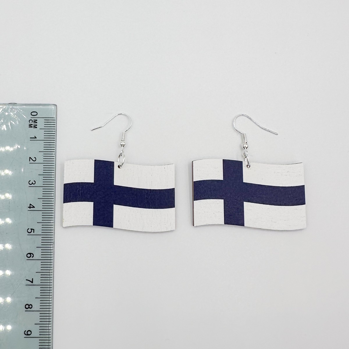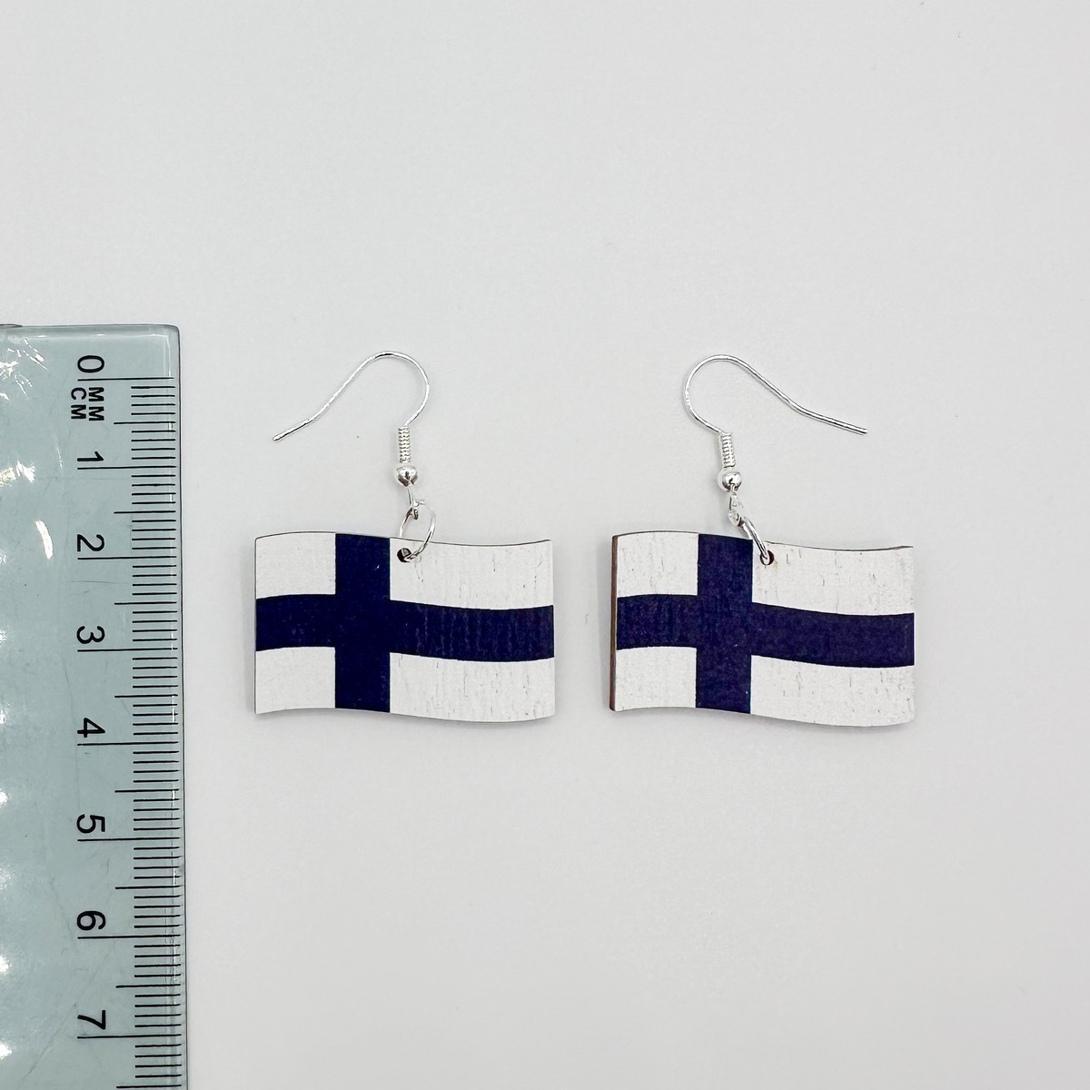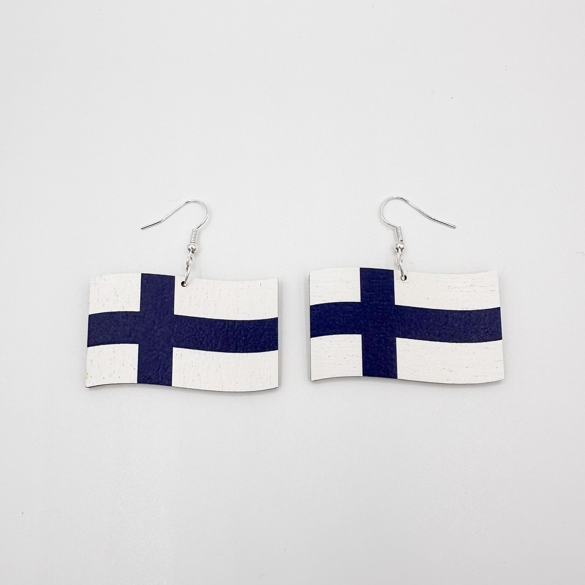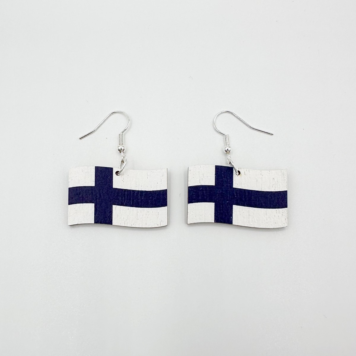 Suomen lippu -korvikset: liehuva lippu. Saatavana useita kokoja.