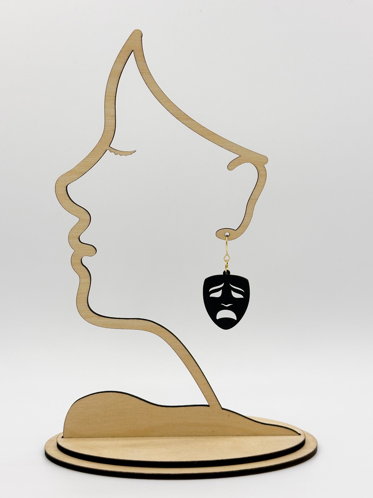 Teatteriaiheiset ”Komedia-Tragedia” -korvikset.