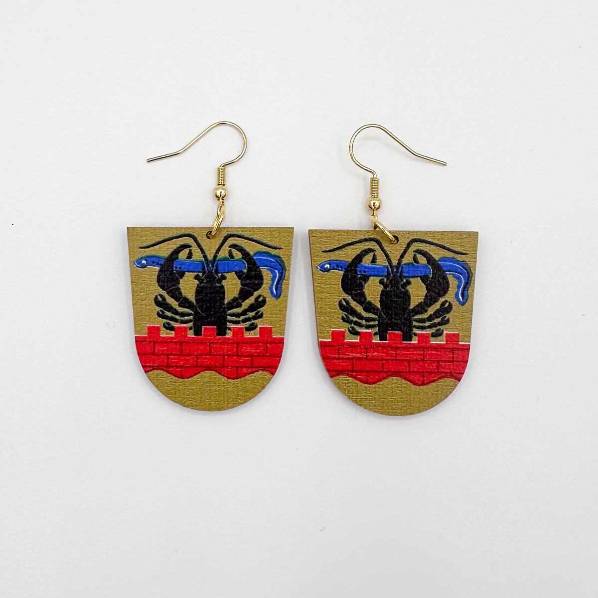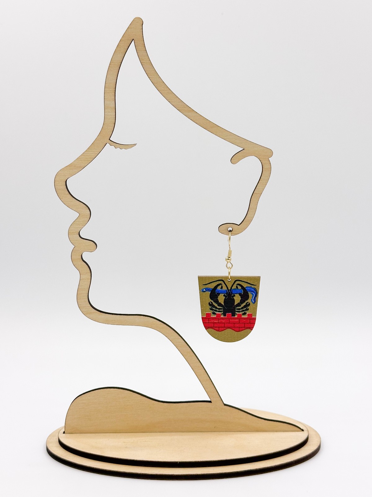 Materiaali tulostettua kotimaista koivuvaneria. Koukut ruostumatonta terästä (304) aidolla 18k kultauksella.