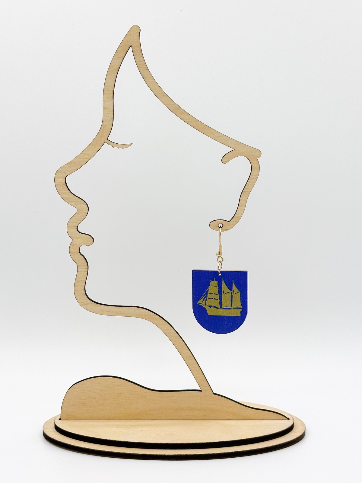 Materiaali tulostettua kotimaista koivuvaneria. Koukut ruostumatonta terästä (304) aidolla 18k kultauksella.