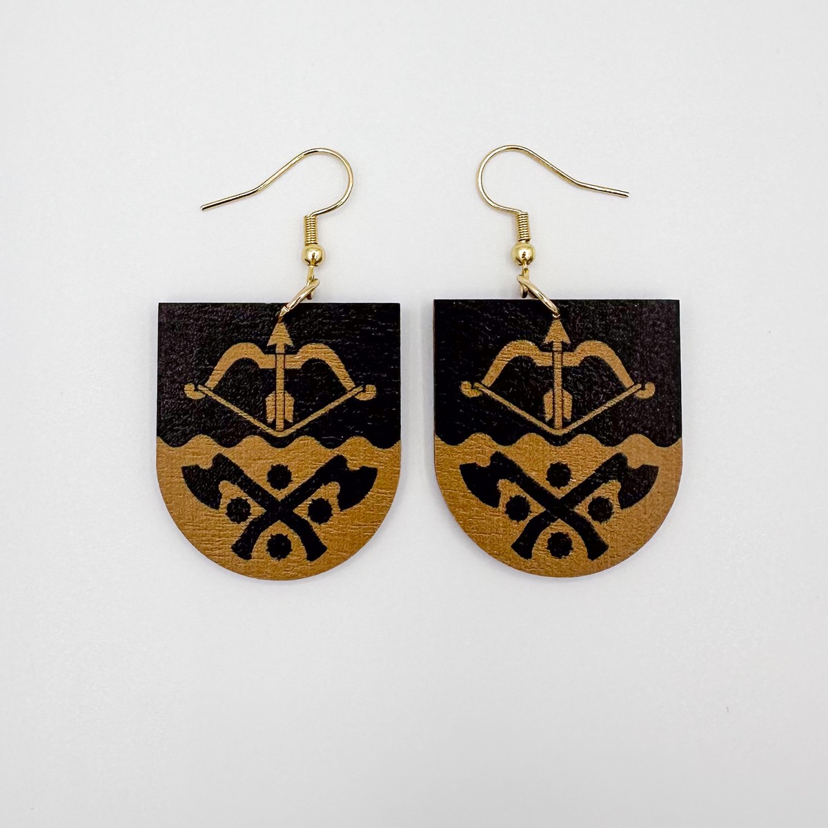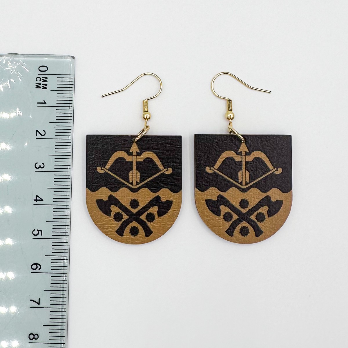 Materiaali tulostettua kotimaista koivuvaneria. Koukut ruostumatonta terästä (304) aidolla 18k kultauksella.
