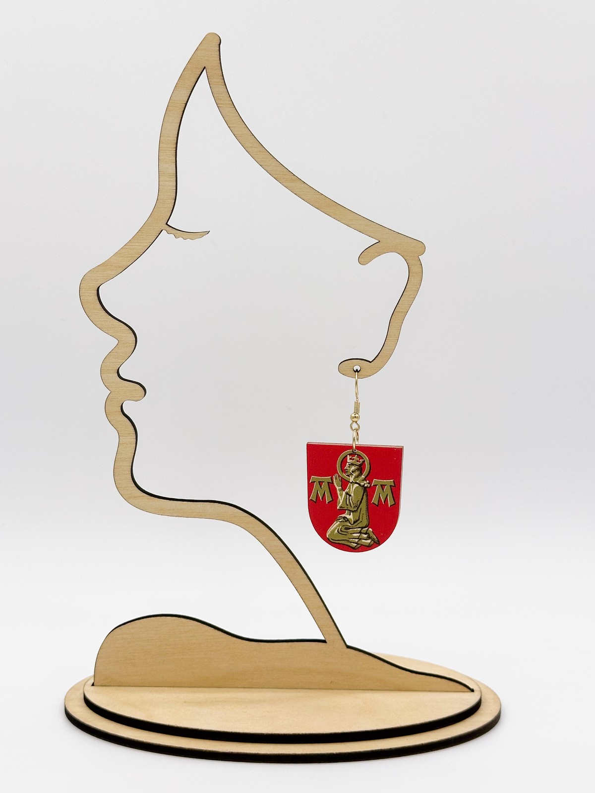 Materiaali tulostettua kotimaista koivuvaneria. Koukut ruostumatonta terästä (304) aidolla 18k kultauksella.