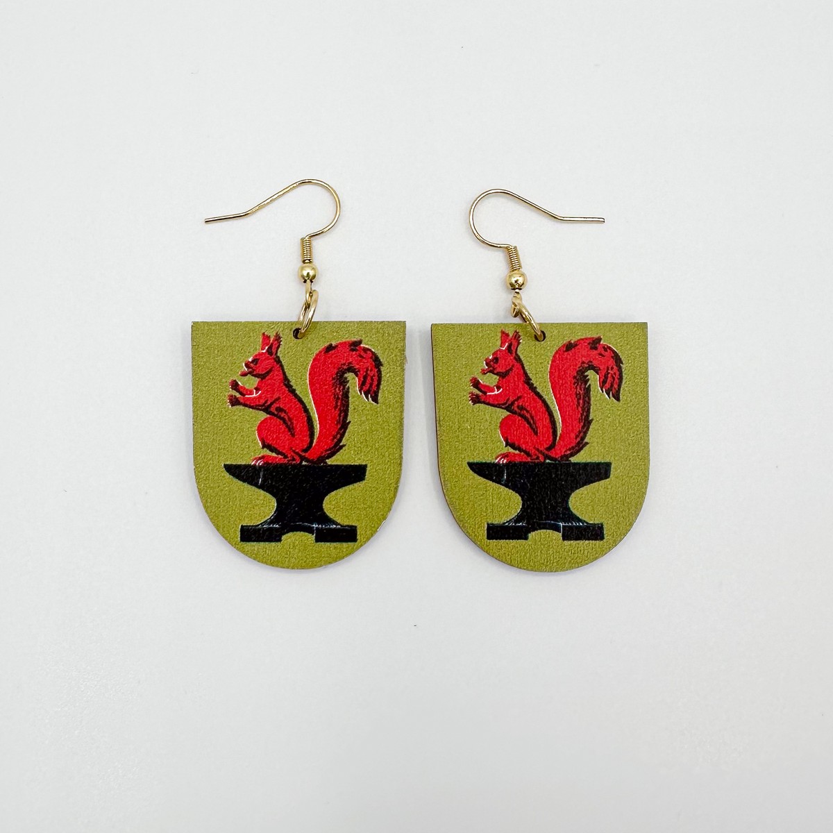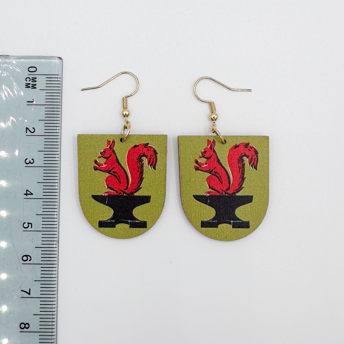 Materiaali tulostettua kotimaista koivuvaneria. Koukut ruostumatonta terästä (304) aidolla 18k kultauksella.