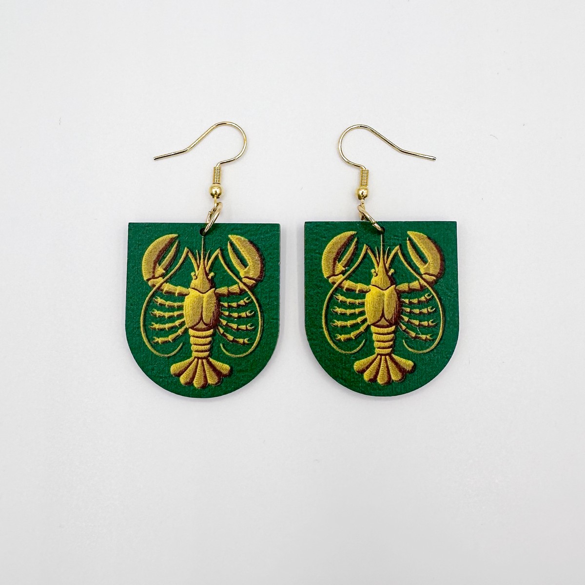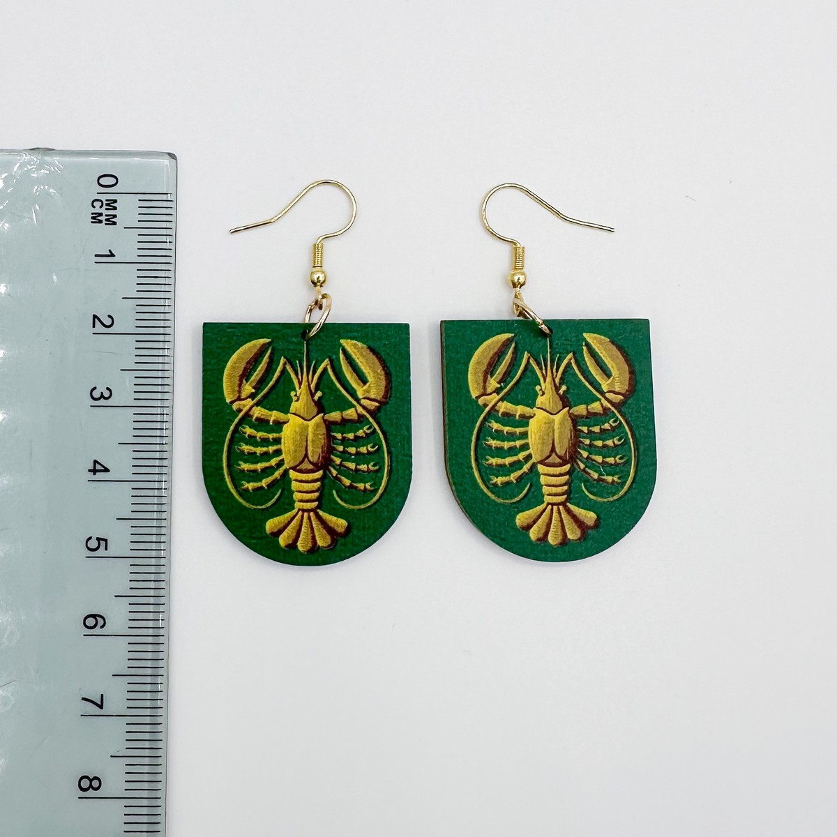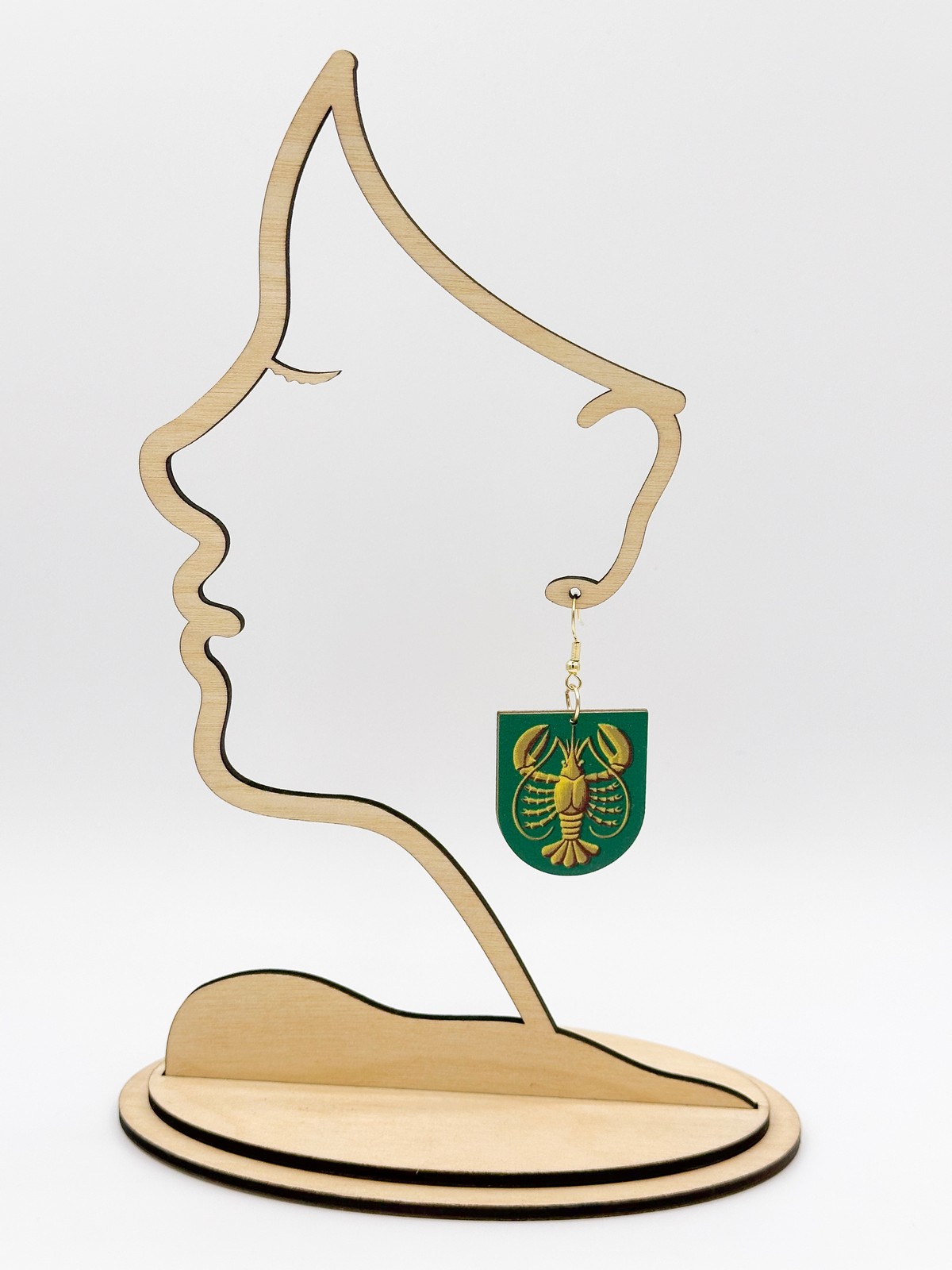 Materiaali tulostettua kotimaista koivuvaneria. Koukut ruostumatonta terästä (304) aidolla 18k kultauksella.