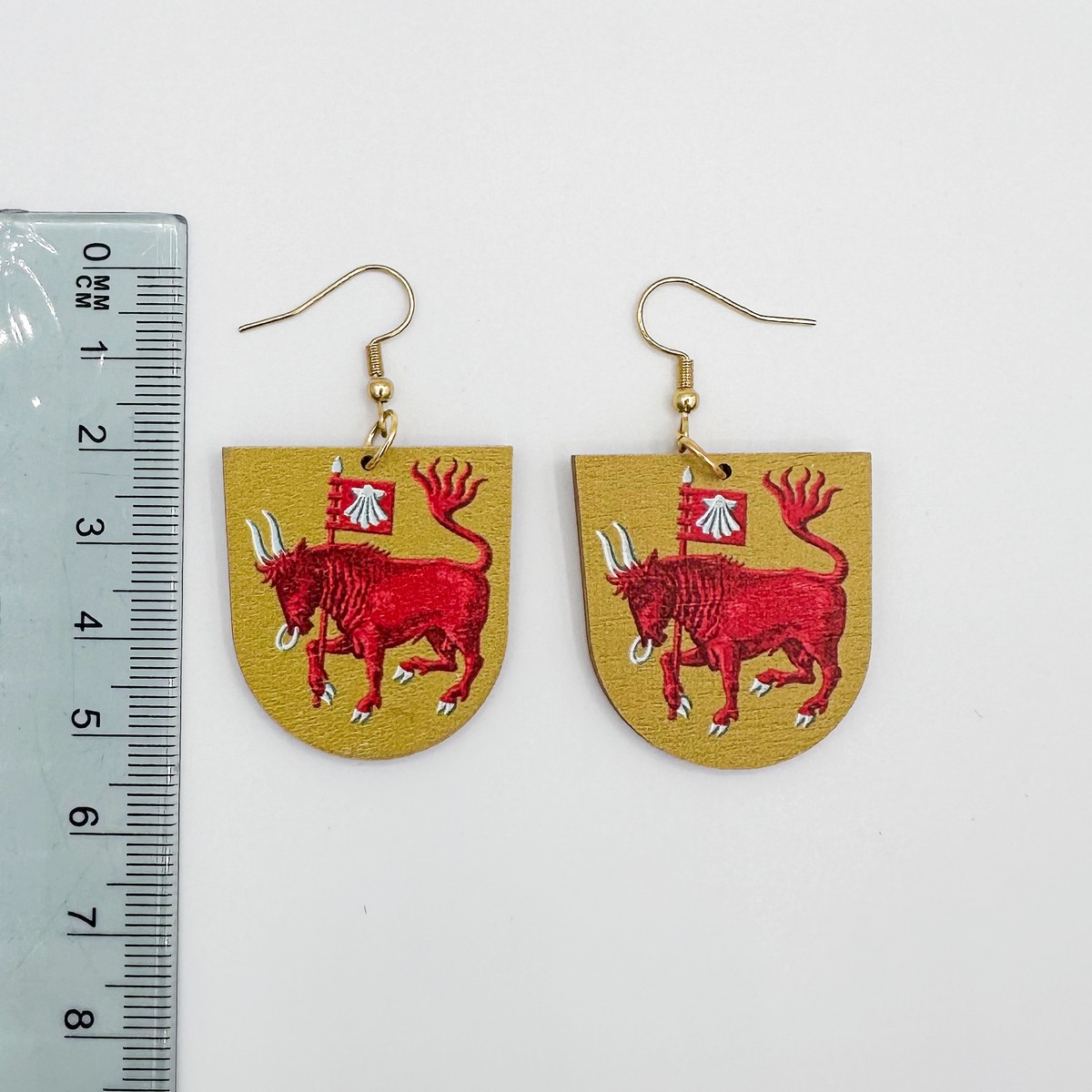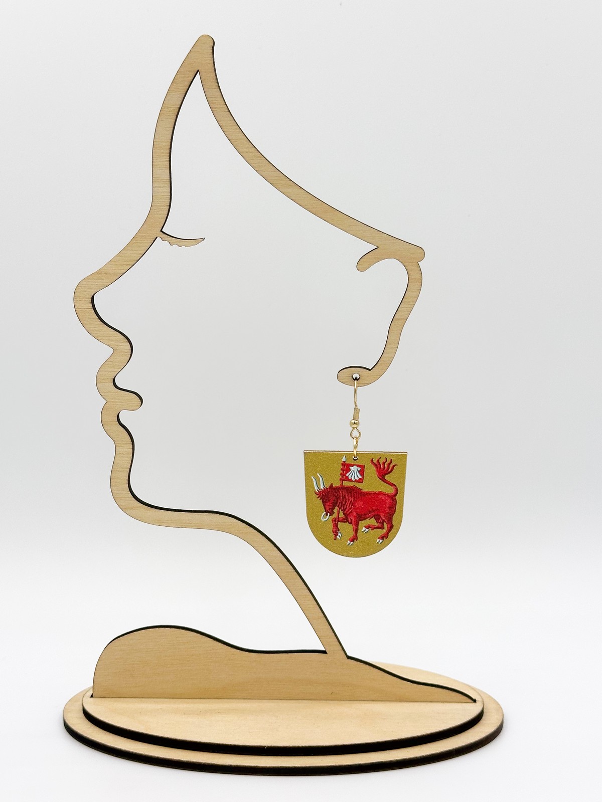 Materiaali tulostettua kotimaista koivuvaneria. Koukut ruostumatonta terästä (304) aidolla 18k kultauksella.