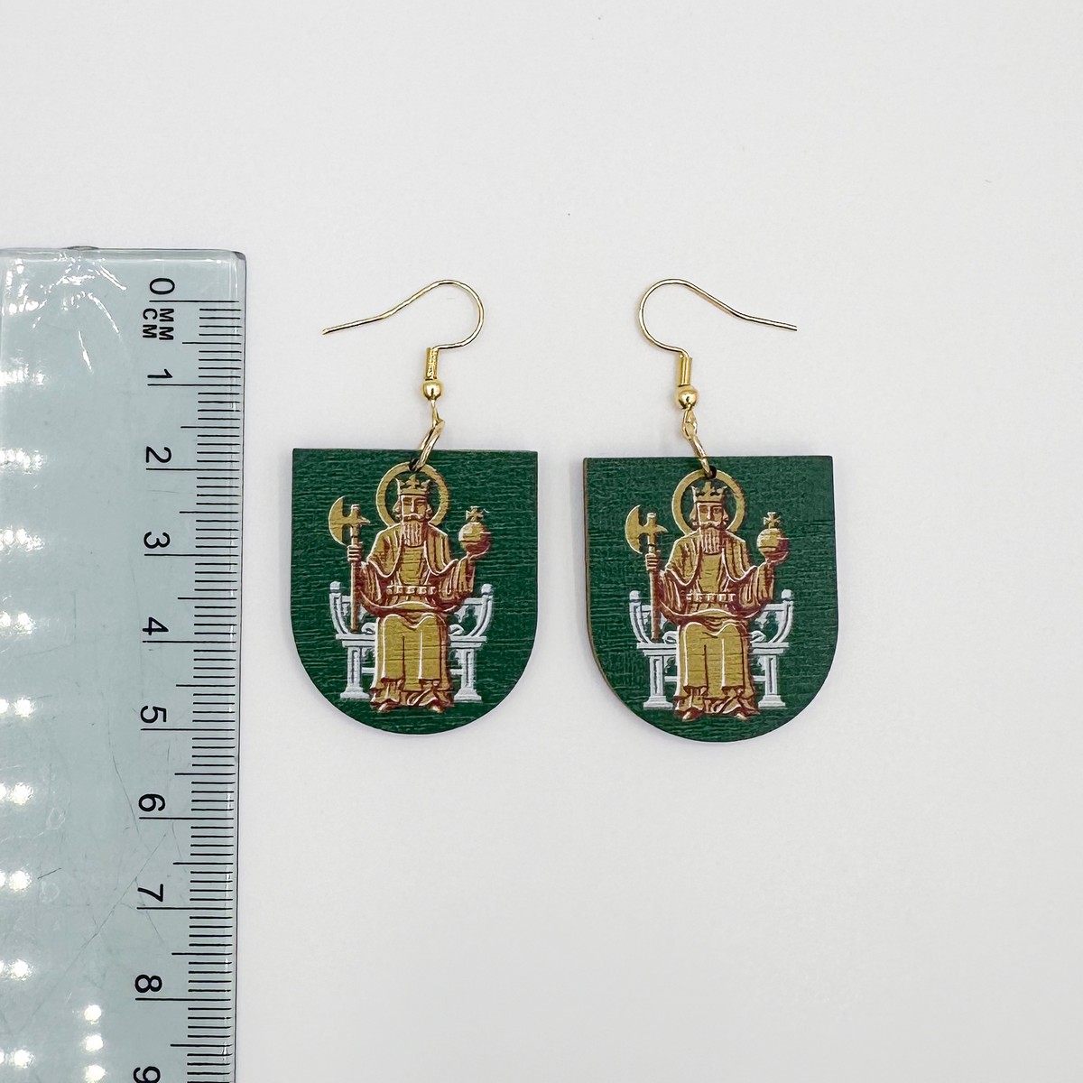 Materiaali tulostettua kotimaista koivuvaneria. Koukut ruostumatonta terästä (304) aidolla 18k kultauksella.
