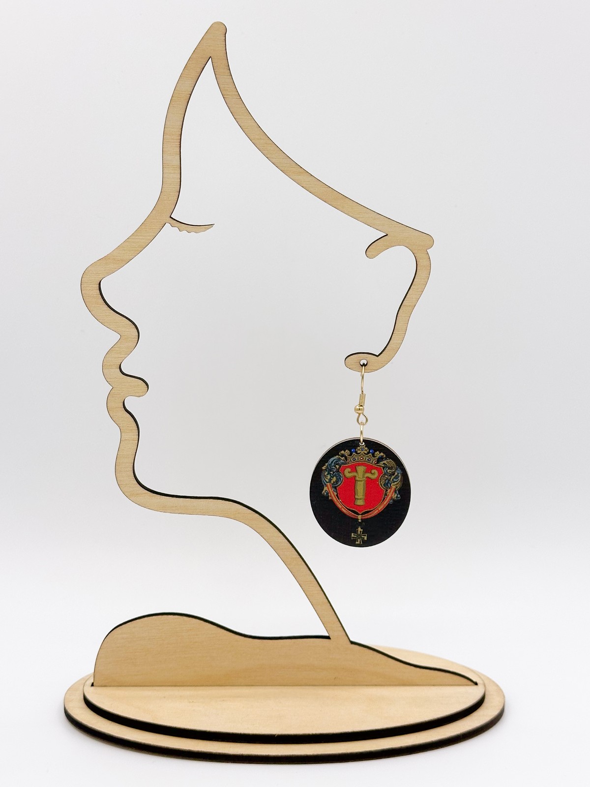 Materiaali tulostettua kotimaista koivuvaneria. Koukut ruostumatonta terästä (304) aidolla 18k kultauksella.